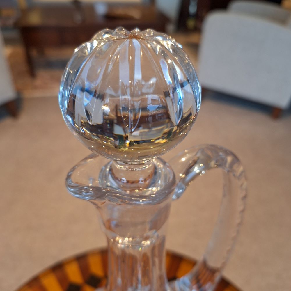 Model: Karaf met handvat Kristal Afm: Ø.15 x H.36 cm. Gemaakt in Polen; 24% loodkristal Beperkt leverbaar OP=OP!