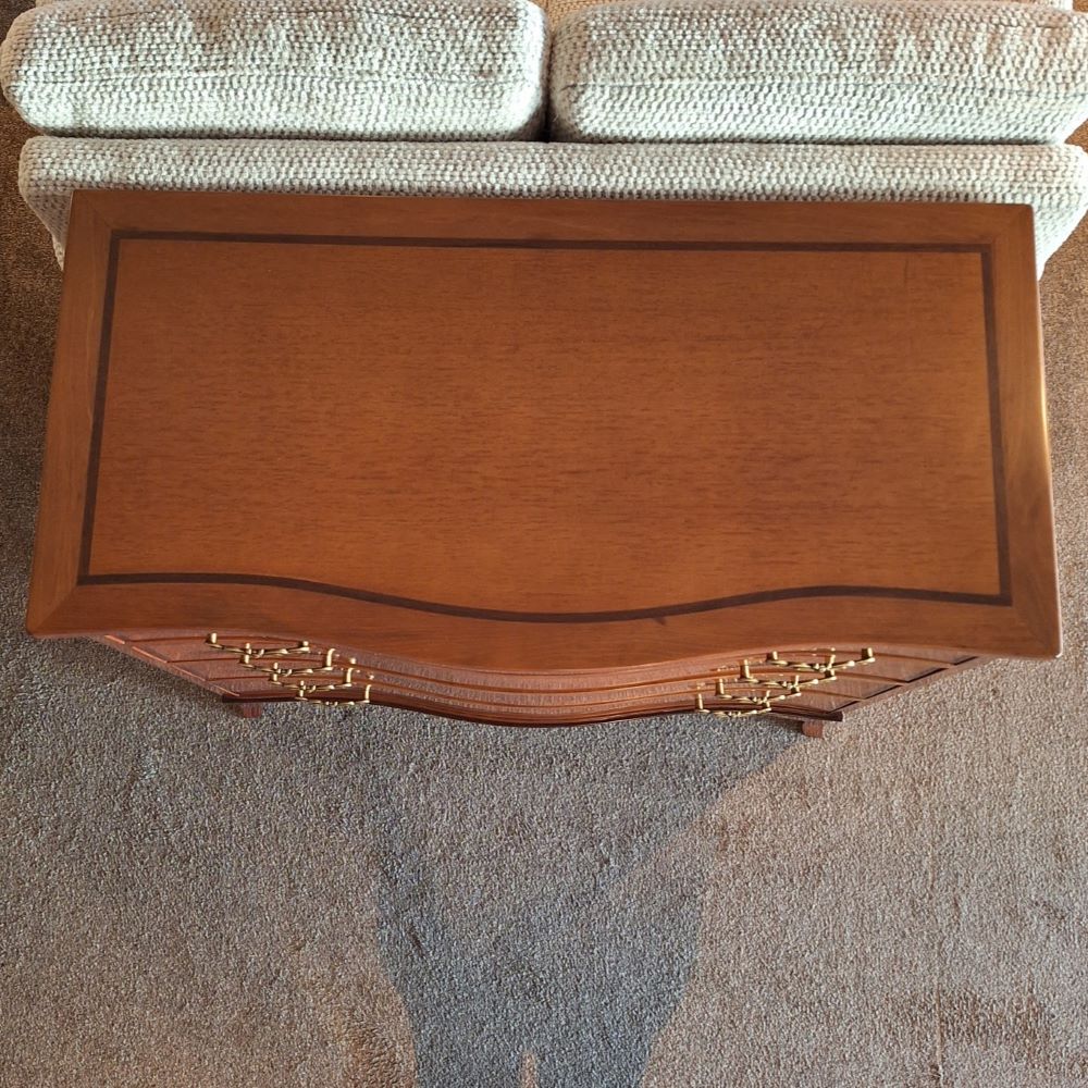 Mooie kwaliteit met ingelegde Palissander bies op het bovenblad, zijpaneel en lades.