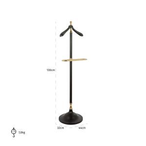 Het Kledingrek Balley combineert functionaliteit met verfijnde esthetiek, perfect voor wie zijn of haar kleding met stijl wil presenteren. Dit kledingrek is voorzien van een elegante staander en een stevige voet, die stabiliteit garandeert. Het bovenste gedeelte is ontworpen met een kledinghanger die de perfecte ondersteuning biedt voor kostuums, jassen of andere kledingstukken. De subtiele goudkleurige accenten voegen een vleugje luxe toe, terwijl het slanke ontwerp zorgt voor een moderne uitstraling. Ideaal voor gebruik in de slaapkamer, kleedkamer of hal om je favoriete kledingstukken netjes en toegankelijk te houden.