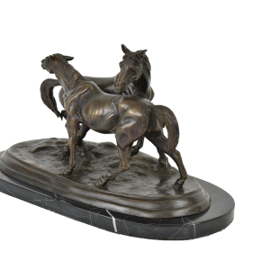 Model: Twee Paarden - Two Horses Art.nr: A4662-AC-MAR Uitgevoerd in brons & marmeren voet. Afmeting : H.25 x B.40 x D.15 cm