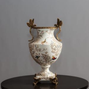 Model: White Dragon Fly Vase Art.nr: G-1110 Uitgevoerd in porselein & koperen voet. Afmeting : H.45,5 x B.23 x D.23 cm