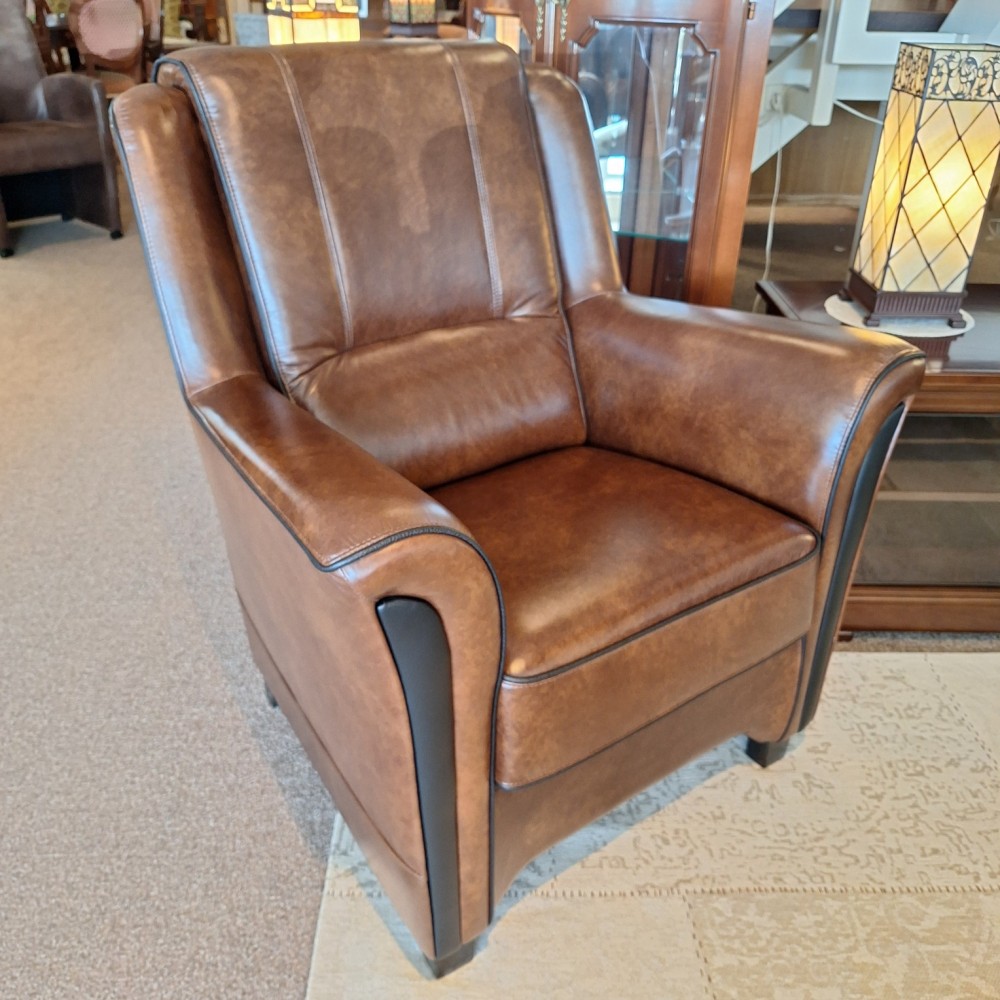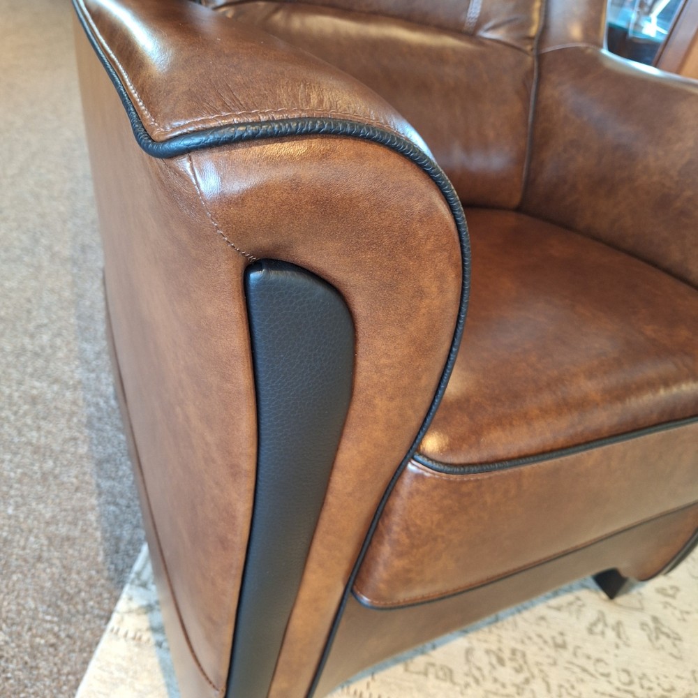 Uitgevoerd in (handwish) leder: Windsor 705 bruin & zwarte leer accenten. (zie foto)