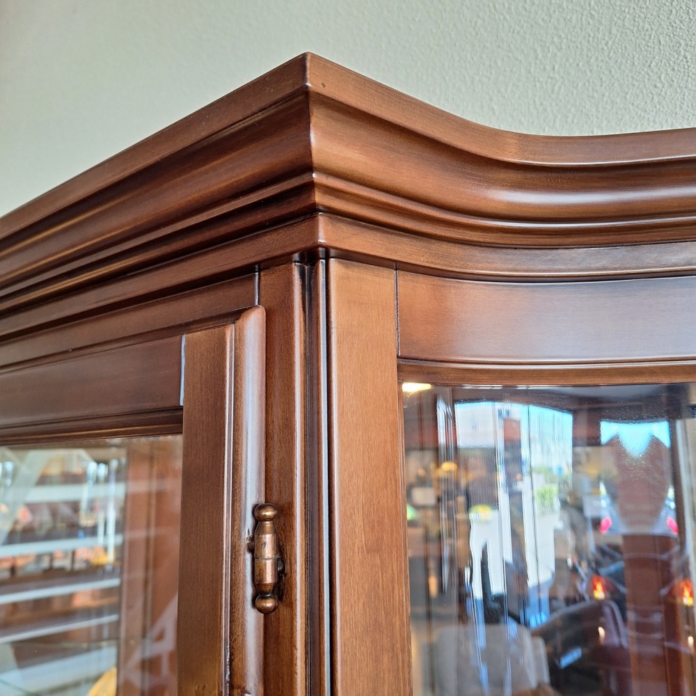 Classic Style Innovation Bubola klassieke vitrinekast Art. nr: 88 Afm: B.151 x H.200 x D.36 cm Incl. verlichting - 2 deurs - 4 glasplaten Achterwand: Spiegel SHOWROOMMODEL -40%! = DIRECT LEVERBAAR! Adviesprijs: 3275 NU: 1965,- euro!