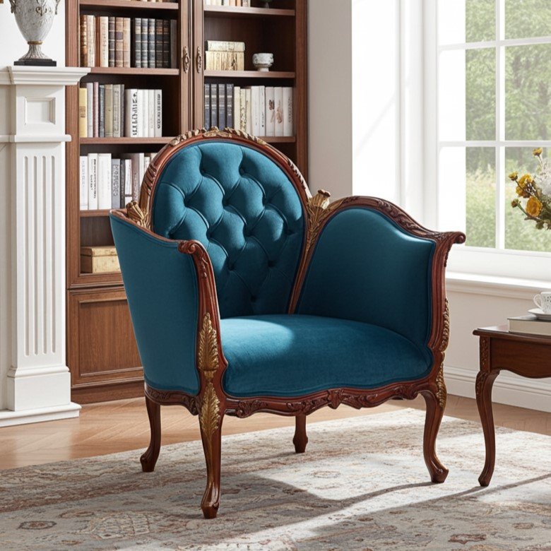 - Details: Veel fauteuils hebben verfijnde accenten zoals goud- of zilververgulde elementen, knopen (tufting) op de rugleuning, of decoratieve nagels langs de randen.